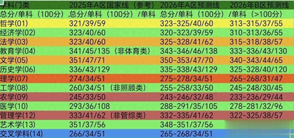 国家线预测,仅供参考