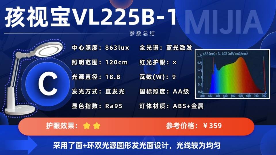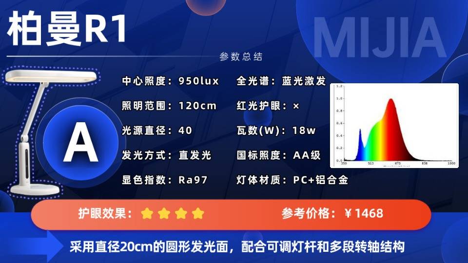 一句话推荐:采用了面+环双光源圆形发光面设计,光线较为均匀