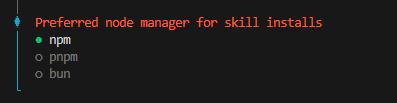 然后会让你选择用什么管理器安装,我自己一般最常用的就是npm,这个你装了node.js,就自动有npm命令了。