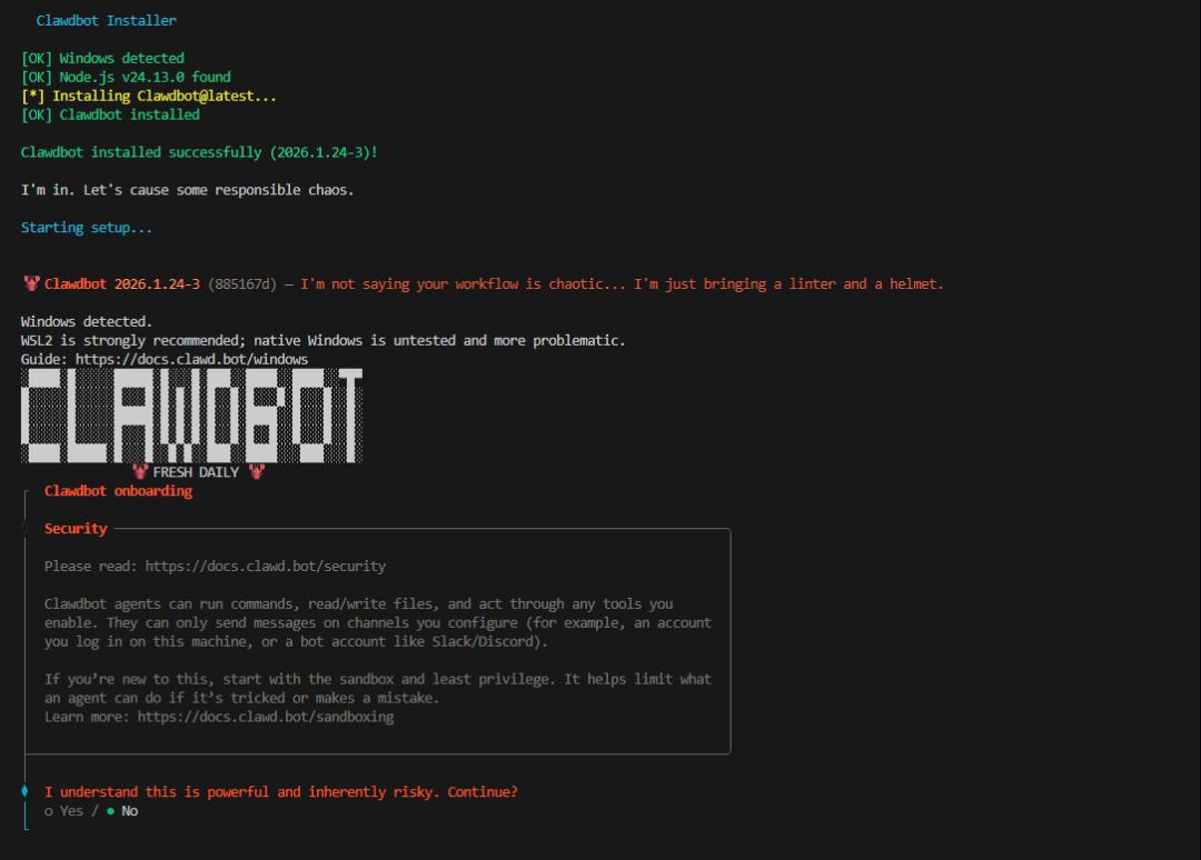 这句话的大概意思就是,我懂这个大龙虾能力很强但是风险极大,你确认吗继续吗。