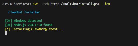 # Windows安装使用下面这个命令iwr -useb https://molt.bot/install.ps1 | iex# macOS / Linux / Ubuntu / Debian安装使用下面这个命令curl -fsSL https://molt.bot/install.sh | bash -s -- --install-method git记得运行这个命令前,一定要先装个node.js,得22版本以上,要不然会报错。