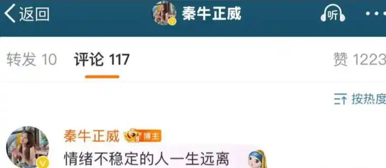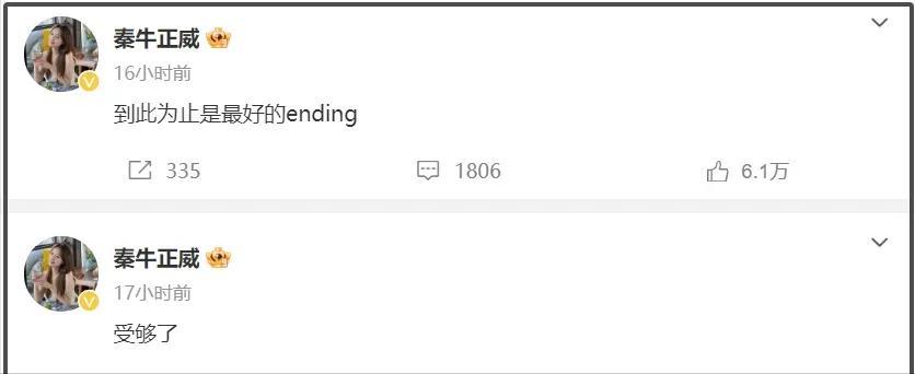 2024年12月26日,还有媒体拍到两人在跨年晚会现场亲密接吻,丝毫看不出要分手的苗头;结果仅仅三天,秦牛正威就深夜发文,用“受够了”“到此为止是最好的ending”官宣单方面分手,还在评论区暗戳戳暗示男方情绪不稳定,直言“情绪不稳定的人,一生远离”,反转来得猝不及防。