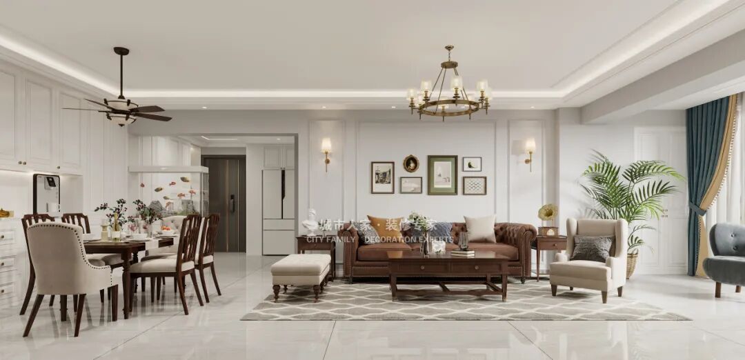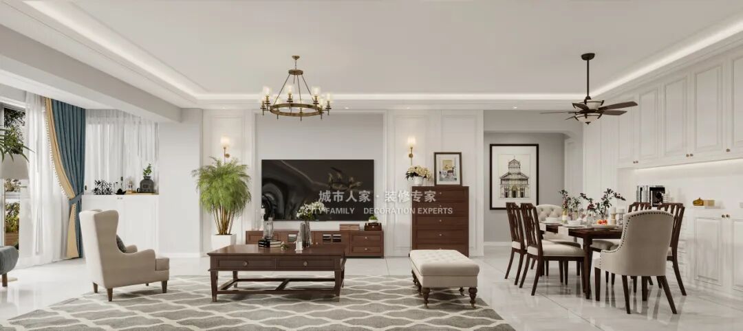 美式崇尚自在随意的生活方式,没有太多修饰与约束,不经意中就成就了一种休闲式的浪漫。而美国文化以移植文化为主导,它有着西方巴洛克的奢侈与贵气,又结合了美洲大陆的不羁,是一钟有文化感、高贵感又不乏情调的装饰风格。