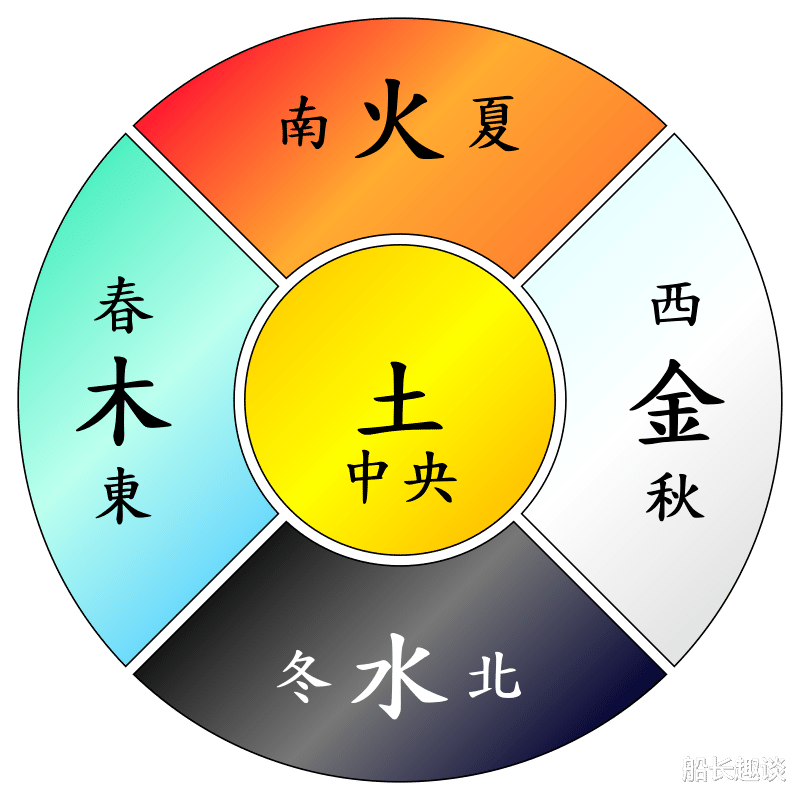 五行与颜色相配:木青色、火赤色、金白色、水黑色、土黄色。