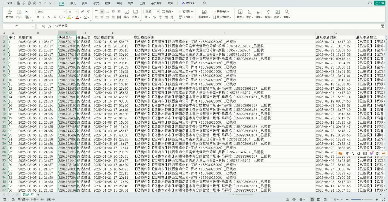 单号添完,会在主界面表格里显示,点顶部 “开始查询” 按钮就成。查询的时候,表格会实时显示进度,“物流状态” 列会从 “待查询” 变成 “已发货”“运输中” 这些。普通电脑查 1000 单也就 5 分钟,成功率还能到 99.7% 以上,不用一直盯着,这段时间咱还能处理别的活儿。
