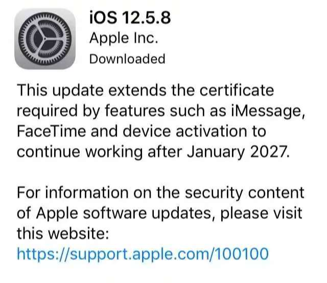 iPhone 5s本次收到的是iOS12.5.8版本更新,和iOS26.2.1同步推送,核心是安全补丁修复+基础功能适配,虽然无法体验新功能,但能支持AirTag 2的基础蓝牙定位和鸣音查找功能,日常使用更安全。