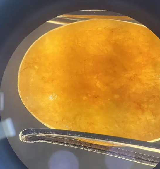 相比之下,柯巴树脂仿琥珀的鉴别则略微困难。柯巴树脂与琥珀的成因相同,都是植物树脂经地质作用形成的,但它在地下埋藏的时间远短于琥珀,属于未完全石化的树脂化石。鉴别柯巴树脂的经典方法是乙醚测试:用棉签蘸取少量乙醚,轻轻涂抹在样品不起眼的位置,随后用手指揉搓,柯巴树脂的表面会迅速出现黏腻的斑点,而天然琥珀质地稳定,不会发生任何变化。需要注意的是,乙醚具有一定刺激性,操作时需保持通风,且避免接触成品琥珀的抛光面。