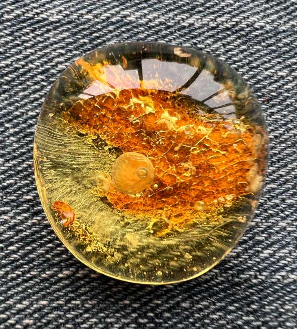 热处理的主要目的是提升琥珀透明度,或是为琥珀增色。经过热处理的琥珀,内部会形成独特的 “太阳光芒” 状片状裂纹,这些裂纹是高温作用下,琥珀内部气泡受热膨胀爆裂后形成的,在透光观察时尤为明显,这也是判断热处理琥珀的核心依据。