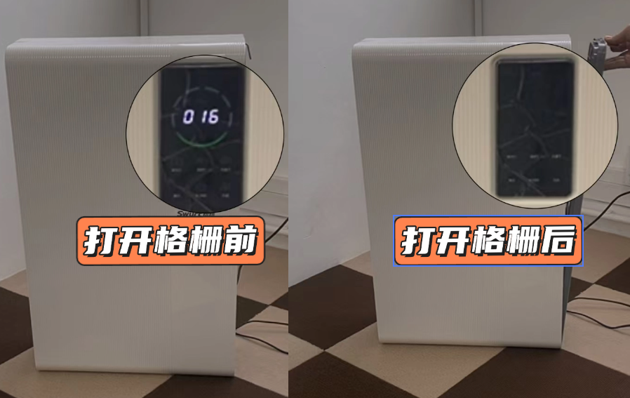 前面的进风栅格可以打开,方便清洁滤芯,比较特别的是,一打开侧边的进风口隔栅就会自动断电。这个设计挺实用的,不用担心在清理时不小心碰到电线或者插口,避免了一些常见的安全隐患,尤其是家里有老人或孩子的情况下更放心。