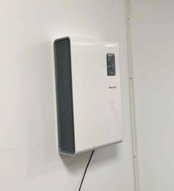 拾梧FW01是壁挂的设计,装在墙上就能用,整个底部是悬空的,不占地面空间。对家里空间不大的用户来说,确实省事很多。装好之后也不会影响日常走动,比放在地上的空气净化器更干净利落。