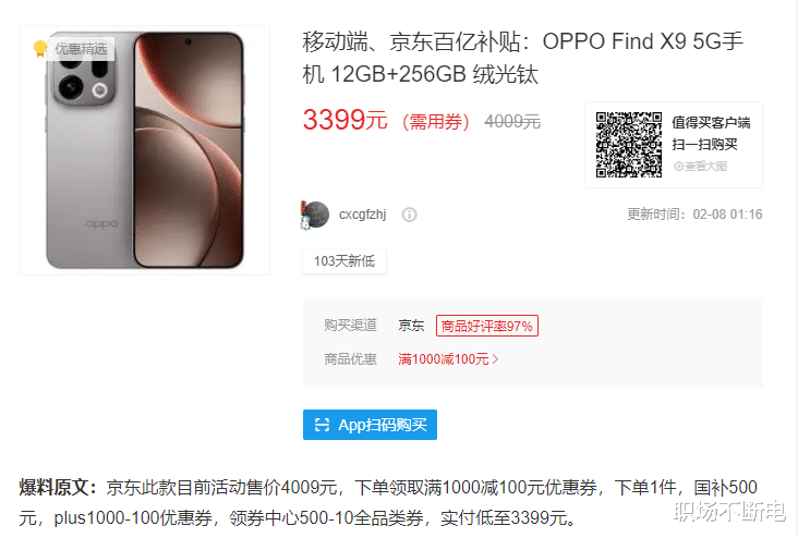 这是我的第116篇原创数码文章,在床上翻来覆去是在是睡不着,翻开京东一看,OPPO Find X9的现在的价格真的让我忍不住爬起来干一篇。