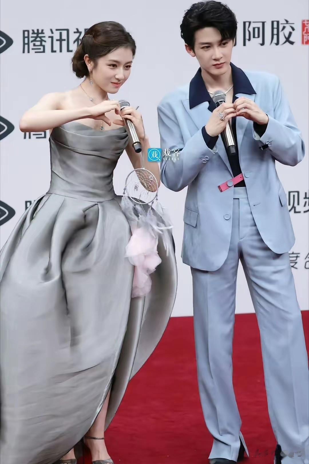 第一个惊喜应该说是檀健次李兰迪自《滤镜》后的红毯携手了,一身淡蓝色西装的檀健次简直就是贵公子的模样,李兰迪一身灰色礼服的样子也十分的甜美可爱,两人简直真的太搭了。
