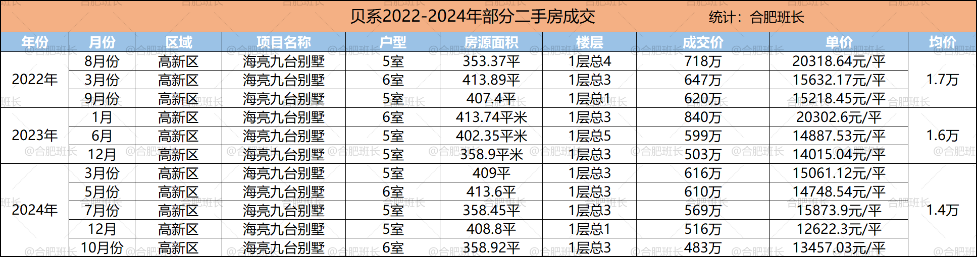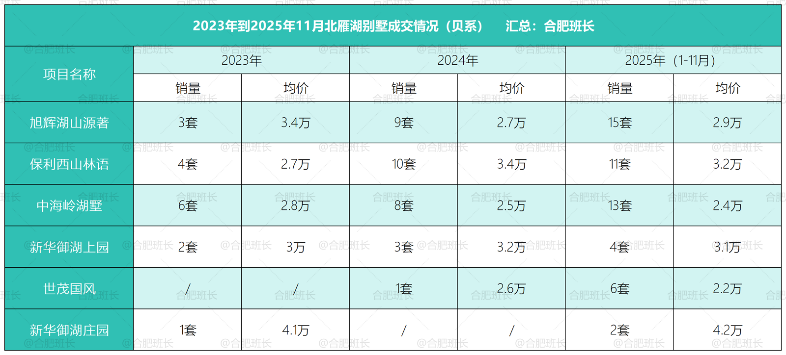 PS:别墅属于真正的一房一价,价格受装修、户型、位置等,尤其是装修影响很大,且数据引用贝系2022年-2025年数据,非合肥所有成交,仅供参考。