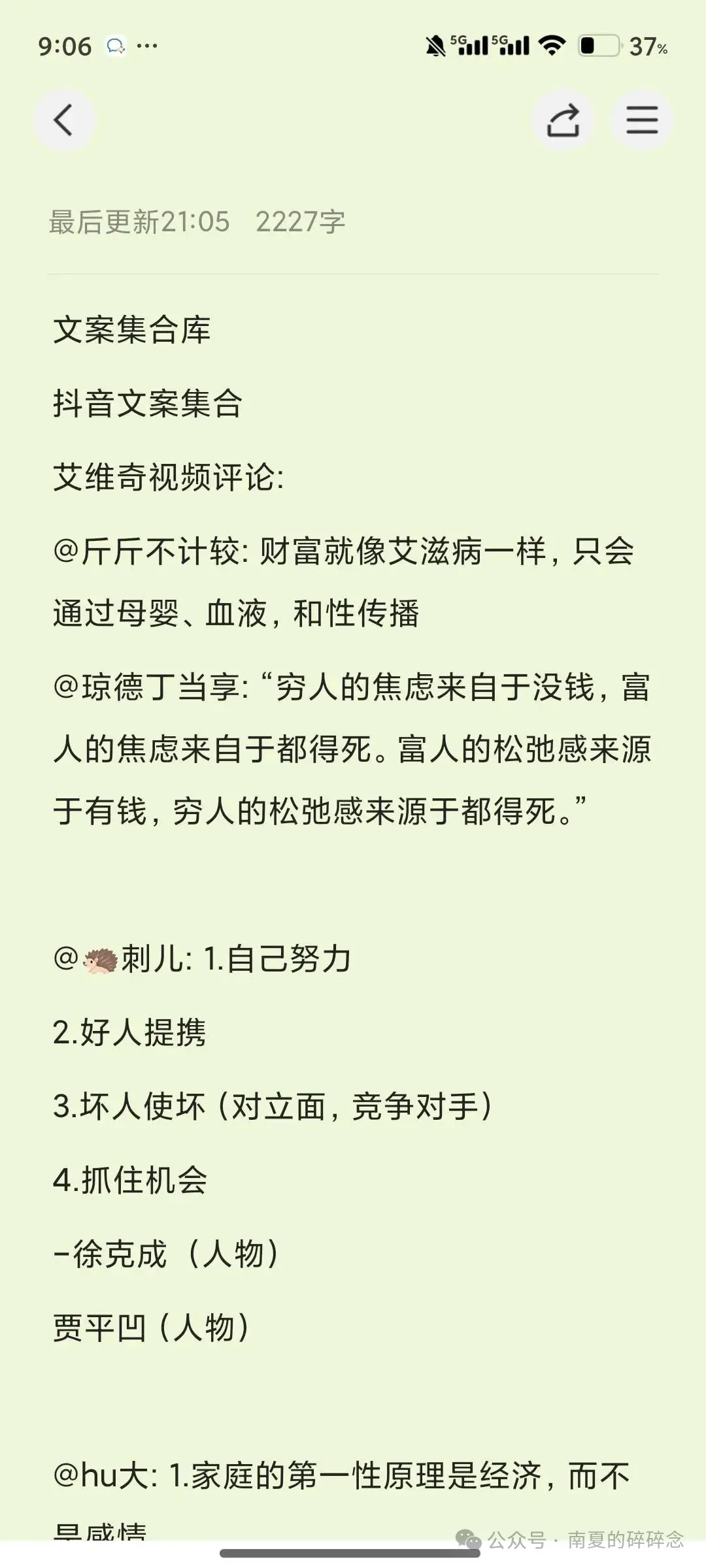 写作来源生活,我在刷视频的闲暇时间,看到不同的评论,那些高赞或一些能够给我语言上冲击的句子,或者吸引我的句子我会及时的记录下来。