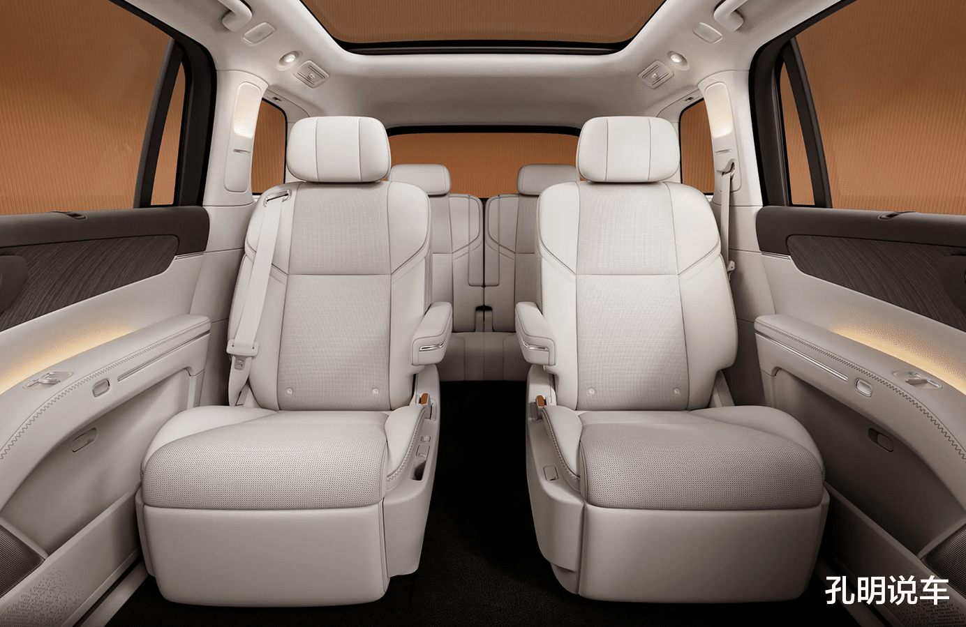 目前的官方定妆照主打了大6座的布局,也就是座椅采用2+2+2的模式,这样第2排两个大的独立座椅体验非常类似那些大尺寸mpv,当然细节上也有折叠小桌板,大容量的冰箱,以及车顶的折叠大电视。