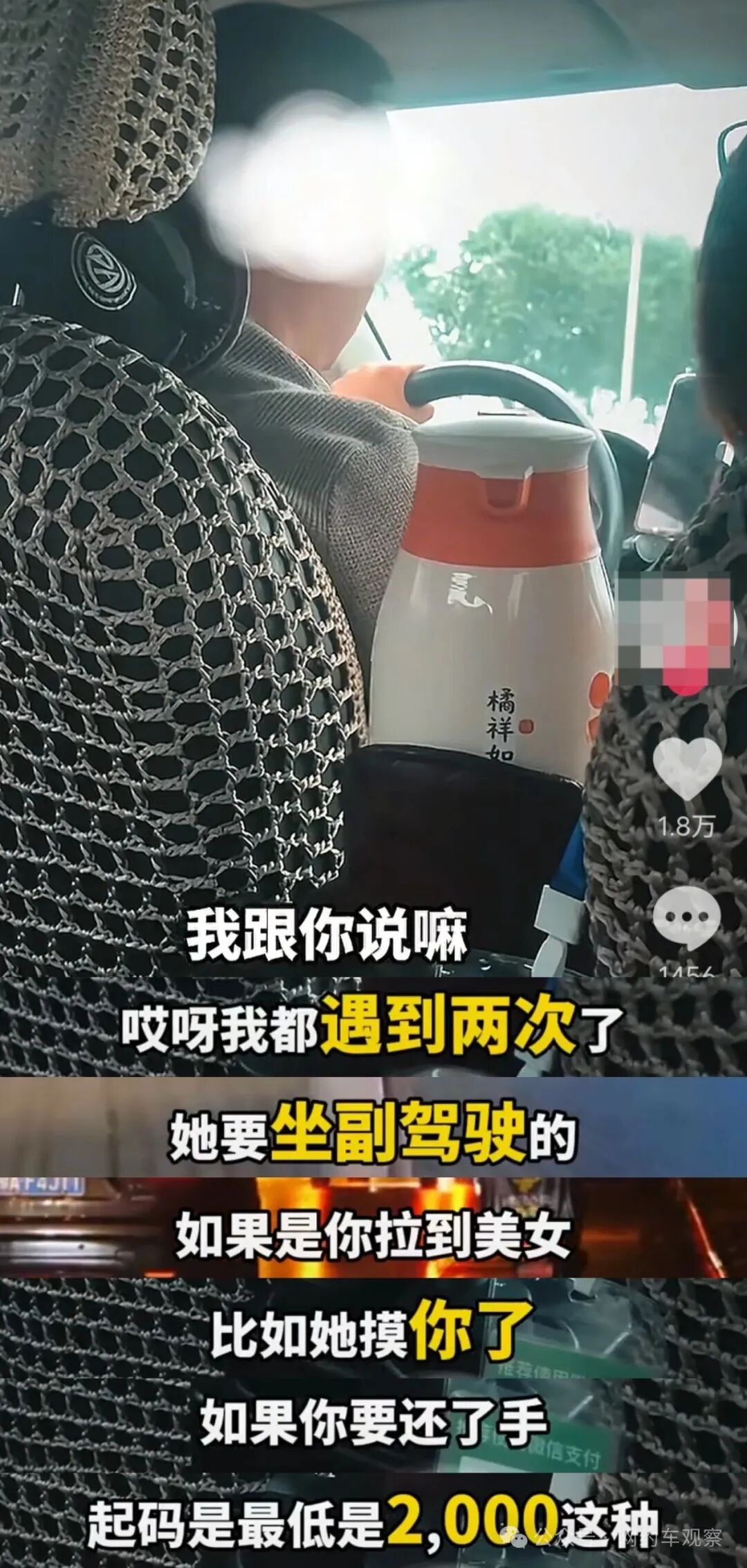 老司机一看就知道这是人家精心设计的“杀猪盘”,一旦自己把持不住答应了,过来的可能不是“两个很漂亮的闺蜜”,而是彪形大汉敲诈勒索了。除了这种还没上车就开始行骗的,还有上了车之后对司机动手动脚的。