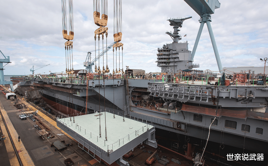 肯尼迪号2011年就切割了第一块钢板,但真正全面开工是2015年。纽波特纽斯造船厂用了模块化建造——就是在不同厂房造好分段,再运到船坞组装。听起来很先进,但实际操作中问题不断。