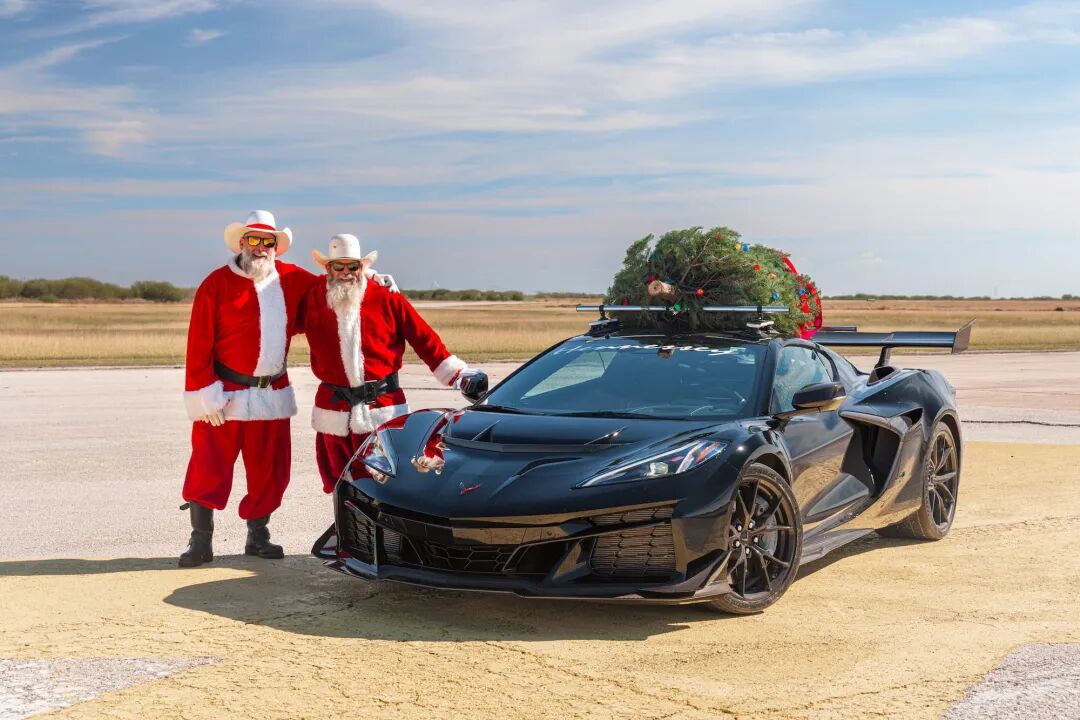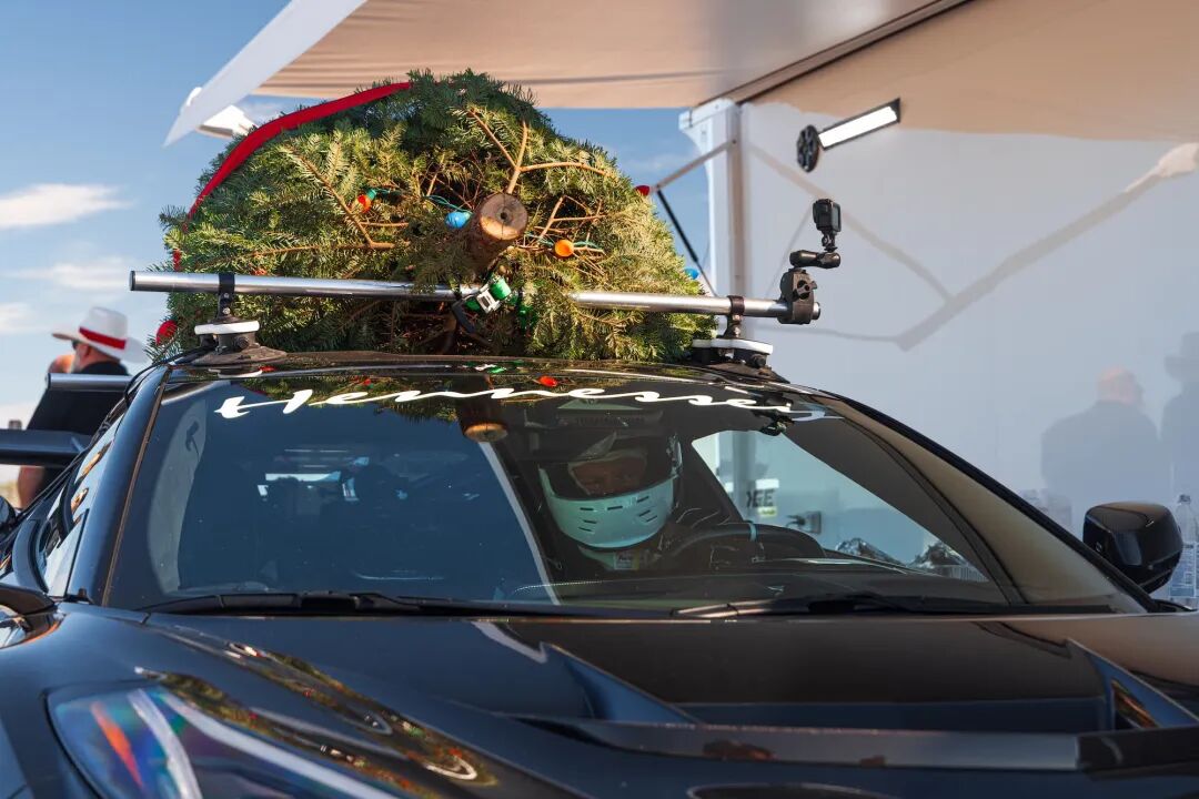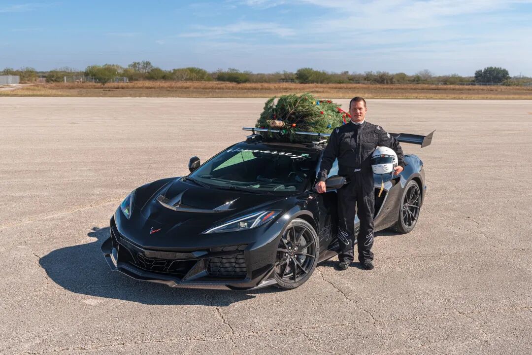 这家德州超跑制造商近日创下了一项新的节日速度纪录:他们将一棵5.5英尺(1.7米)高的圣诞树固定在全新的2026款雪佛兰C8科尔维特ZR1车顶,并且跑出了196英里/小时(约315公里/小时)的极速。