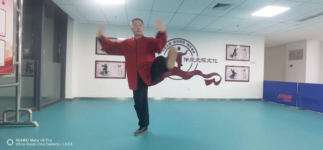 虚步点地,双臂展翼,身形舒展如仙鹤独立,姿态飘逸却内蕴沉稳,正是“鹤立鸡群”的不凡风骨。此式恪守太极“虚领顶劲”之要,亦如邯郸在众多古城中,凭借成语与太极独树一帜,彰显文化自信。