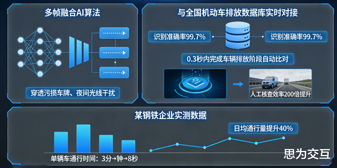 系统搭载的多帧融合AI算法,可穿透污损车牌、夜间光线等干扰因素,将识别准确率提升至99.7%。更关键的是,通过与全国机动车排放数据库实时对接,系统能在0.3秒内完成车辆排放阶段(国三/国四/国五/国六)的自动比对,较人工核查效率提升200倍。某钢铁企业实测数据显示,系统上线后,单辆车通行时间从3分钟缩短至8秒,日均通行量提升40%。