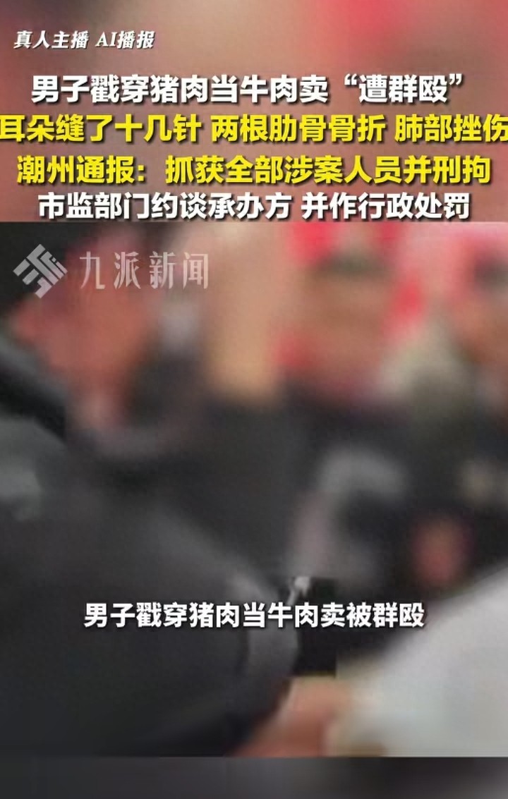 因购物纠纷引发的殴打他人案件我觉得并不认同,把猪肉当牛肉卖,这明显是消费欺诈。全国各地都有类似的案件,涉事商户被判刑、被罚十几万的比比皆是,怎么到这里就变成“购物纠纷”了?线索都送上门了,执法人员该做的是好好查一查这批假牛肉的源头和流向,而不是就站在那里眼巴巴看着举报人挨揍,至少要上去劝劝架吧。好在事发后,当地警方反应很快,打人的现在都被刑事拘留了,市监部门虽然约谈了承办方,做出了行政处罚,但怎么罚的罚多少,当地通报却没提。