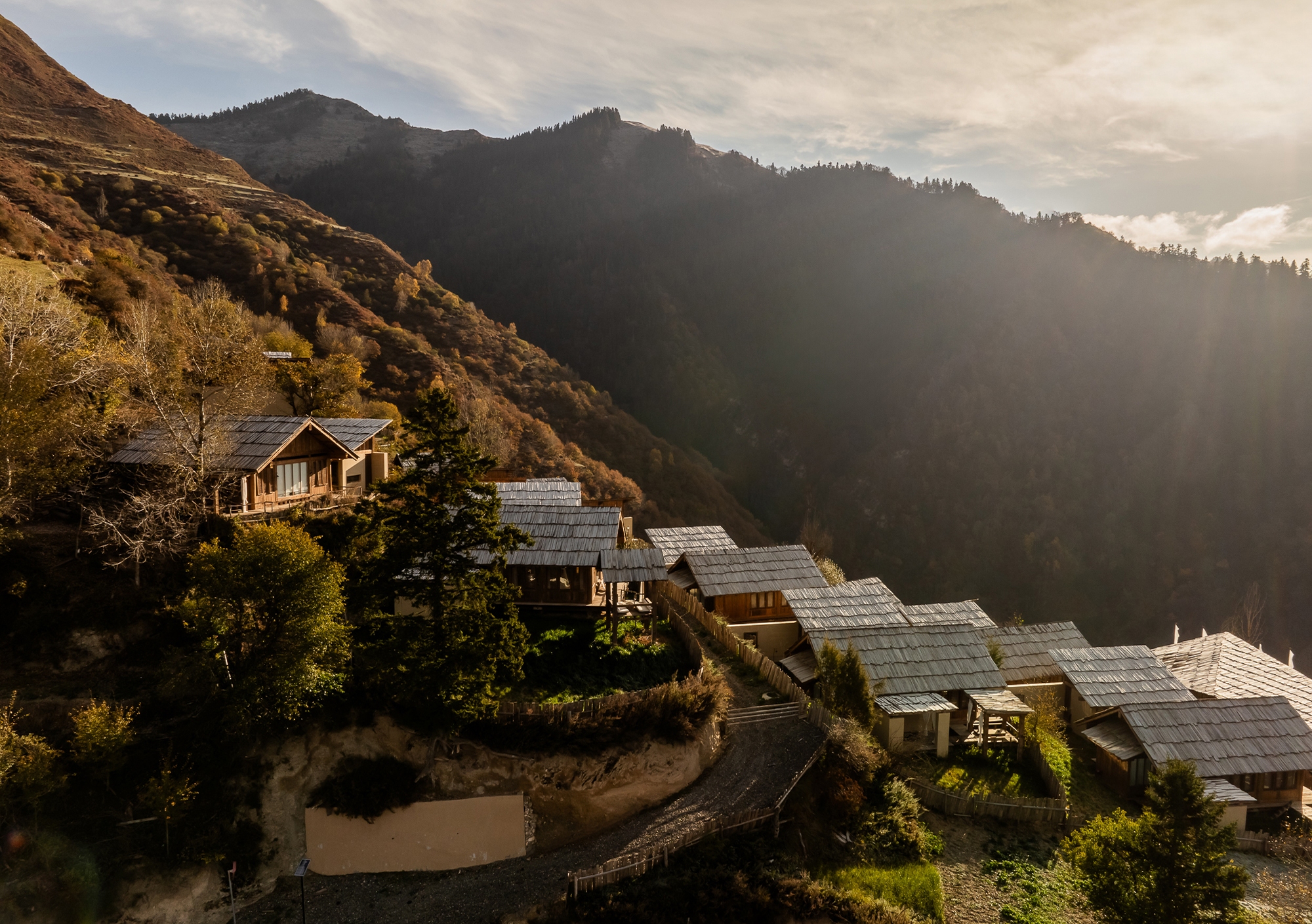 艺加设计和您一起赏析Songtsm度假酒店设计,大量使用木元素及木结构,不仅是形式的选择,更是精神的追求。摒弃浮华,让材料以其最原始的肌理与温度与人对话。空间因而成为一个会呼吸的生命体,弥漫着质朴、温馨与恬静的气息。
