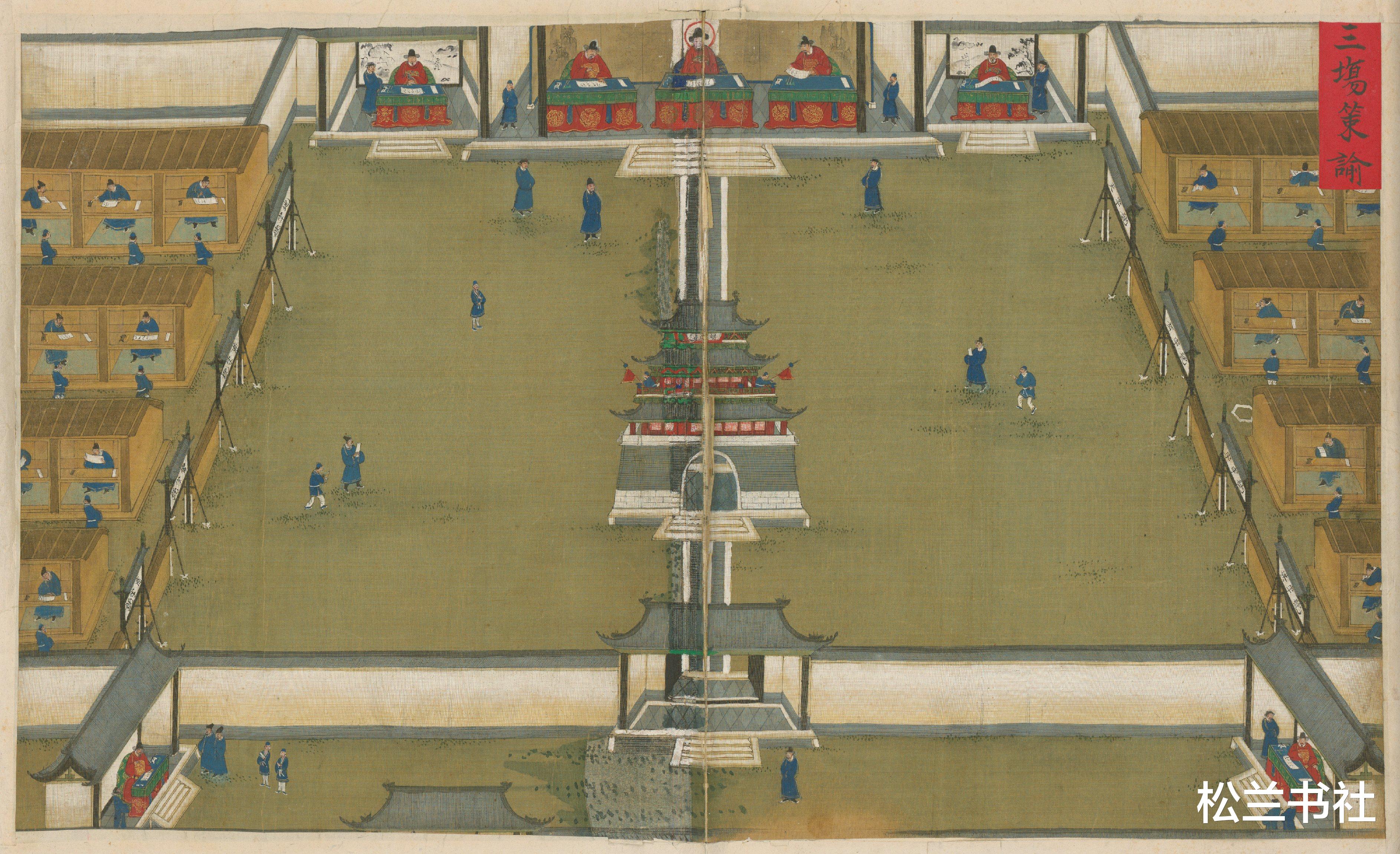 故宫博物院藏《明人考试图横轴》为科举考试及其监考制度提供了形象资料。考生坐落于两侧整齐排列的号舍,号舍前站立着防止考生舞弊的监考人员。
