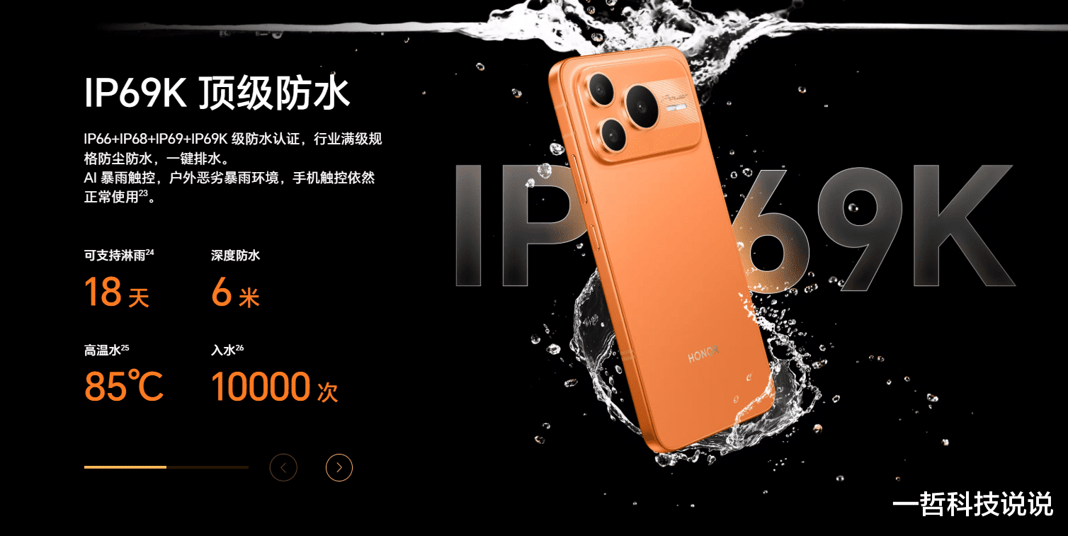 荣耀Power2直接把IP68、IP69、IP69K三重防护认证全部拿下,这在同价位手机里实属难得。