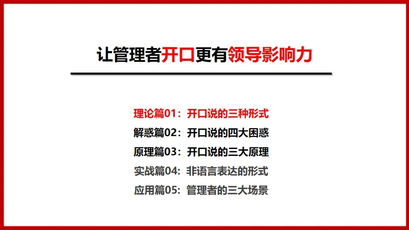 此外,领导影响力还可以帮助管理者在组织内部和外部建立良好的声誉和形象,增强组织的竞争力和影响力。因此,管理者需要不断提升自己的领导影响力,以更好地管理和领导团队,而开口表达,就是提高领导影响力最好的方式,开口表达是一种展示领导力的方式,管理者需要通过开口表达来展示自己的领导能力和魅力。