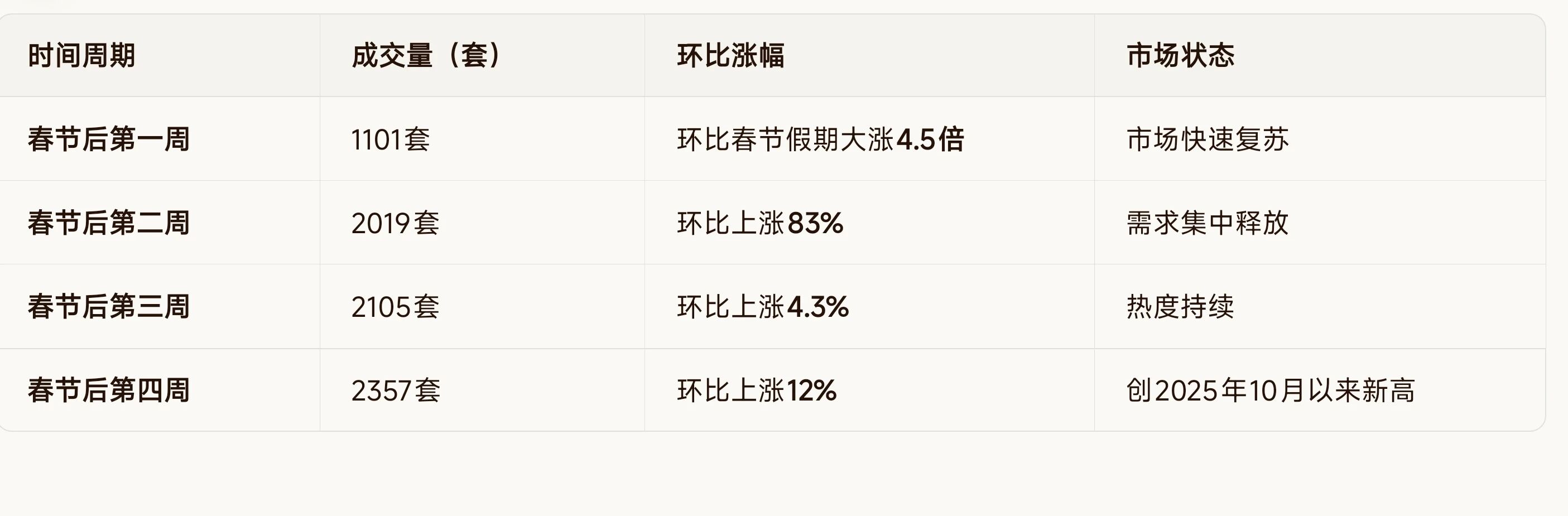 春节后的第1周,二手房成交量达到了1101套,暴涨4.5倍,成交的建筑面积均价9401元。