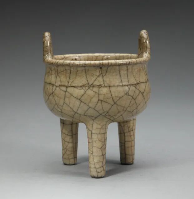 宋(元) 哥窑米黄釉双耳鼎式三足炉