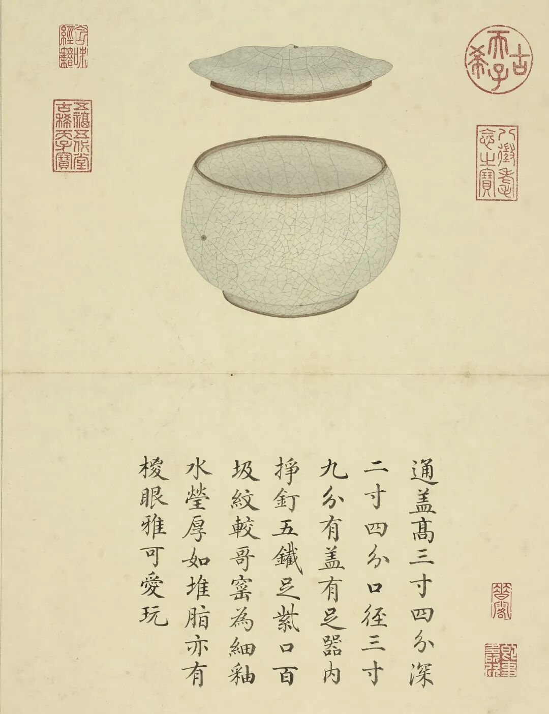 曾任雍正、乾隆两朝督陶官的唐英于雍正十三年(1735年)撰写的一篇碑记《陶成纪事碑》,总结了其自雍正六年(1728年)赴景德镇御窑厂协理窑务八年以来“仿古采今”的制瓷成就,其中记有“仿铁骨哥釉,有米色、粉青二种,俱仿内旧器色泽”。