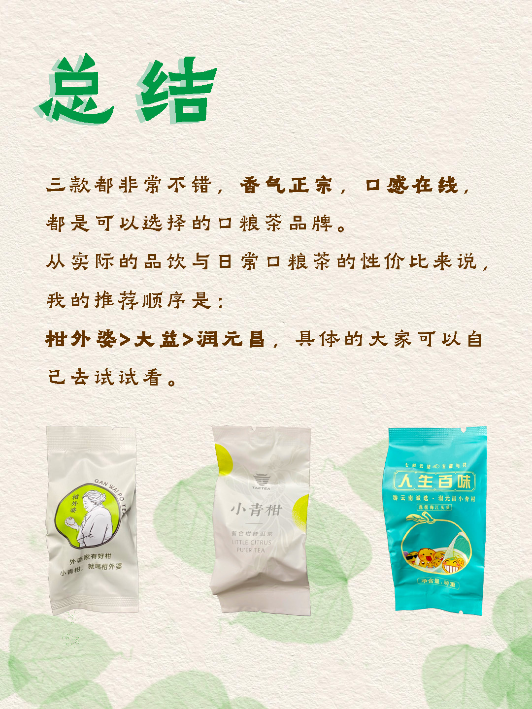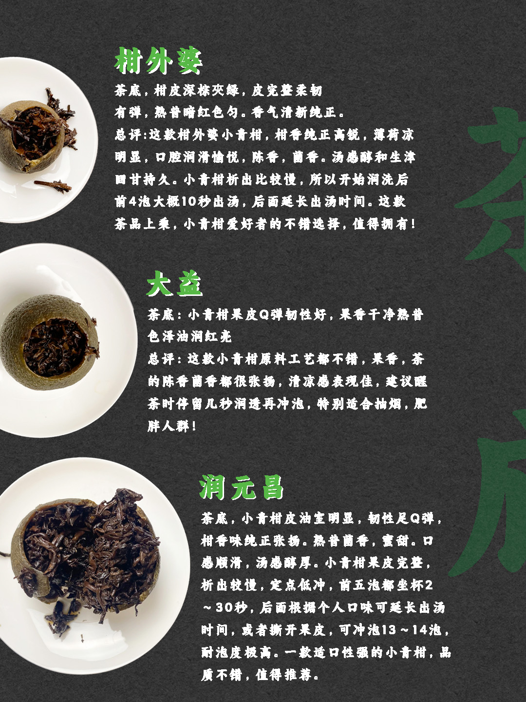 润元昌、柑外婆、大益,各有各的特色与口感特点,想要想入手小青柑的小伙伴,可以先看看这篇。