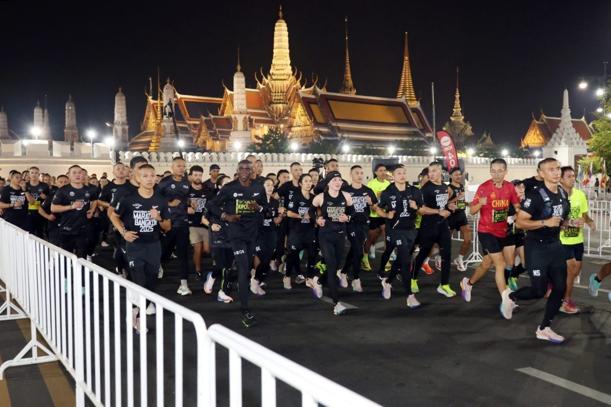 泰国,曼谷,11月30日,由世界田径联合会、泰国国家旅游局、泰国国家体育局联合主办,泰国铁人三项联盟承办的第八届“神奇泰国”曼谷马拉松(Amazing Thailand Marathon Bangkok)盛大举行。来自86个国家的4.8万名跑者从曼谷MBK购物中心出发,途经伦坡尼公园、胜利纪念碑、大皇宫等城市地标,在璀璨霓虹灯下用脚步丈量风景,点燃曼谷运动激情。泰国王后素提达参加此次赛事,与来自世界各地的跑者一起奔跑,为泰国体育文化的多元活力与精彩内涵写下鲜活注脚。