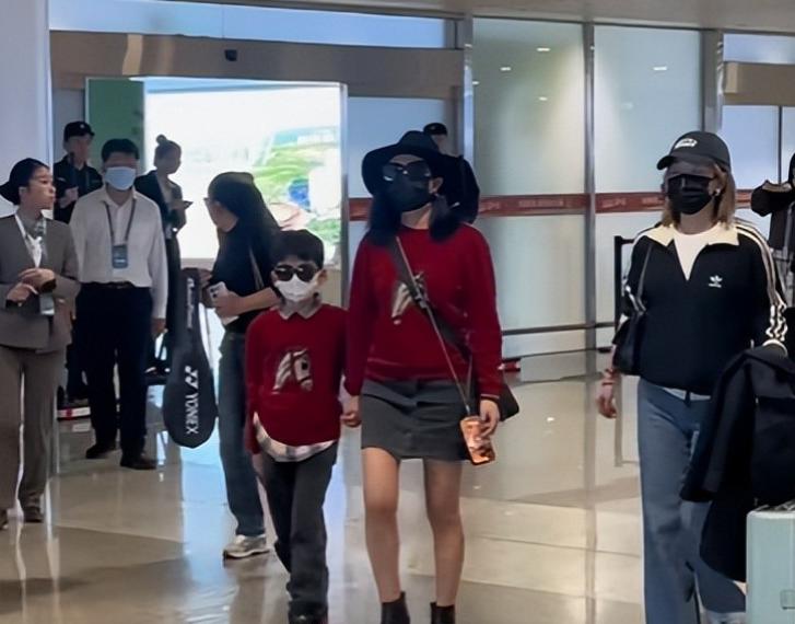 机场里的粉丝和路人看到他们母子俩,都举起手机拍照。