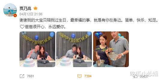 4月12日,贾乃亮晒出和女儿甜馨一起做蛋糕庆生的照片,父女俩头挨着头,亲密无间。并写道:简单,快乐,知足。爸爸很开心,永远爱你。