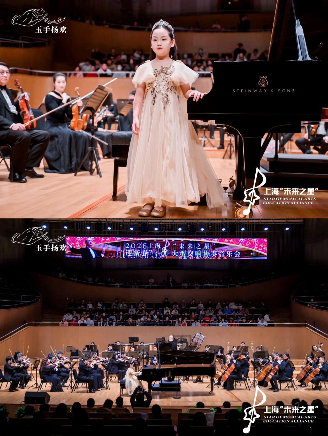 《“上海未来之星”- 大型交响协奏音乐会》已经步入了第9个年头,曾在上海、奥地利维也纳、先后举办了近百场精彩演出。2026年2月9日,我们迎来了火热的“2026寒假·迎新春场”,国内外,众多优秀的身兼才艺的小艺术家们,前来报名参加,齐聚一堂,好不热闹!他们不光有上海本地的小艺术家,更有千里迢迢从美国俄亥俄州、美国加利福尼亚州、香港、新加坡…等地赶来,汇聚魔都,在各界万众瞩目和期待下,于上海东方艺术中心·交响大音乐厅,成功举办了本次大型交响协奏音乐会,并圆满落幕!本届音乐会诚意邀请到了浙江省交响乐团常任指挥,著名指挥家:欧阳汪剑 先生,亲临执棒。由50多位职业演奏家们组成的“双管全编制”大交响乐团,全程配合优秀的小演奏家、小歌唱家们,呈现了一场超高质量的“大型交响协奏音乐会”。充分展现了当下国内外,诸多优秀的青少年艺术领域优秀人才,在交响乐大舞台上的艺术造诣。