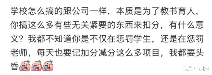 学校也有难处,班级学生多,老师管不过来,用量化考核维持秩序是无奈之举。