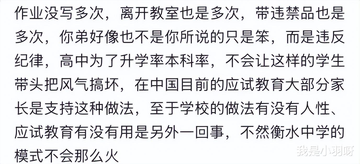 但严格管理和把学生往外推是两码事。学生带电话手表先留校察看,这是严格管理;之后操行分不及格就劝其转学,这是赶人。