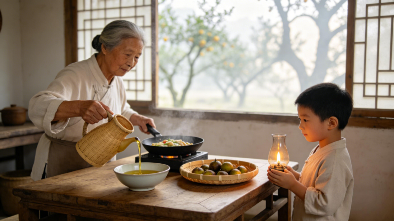 油茶树三年开花、五年结果、十年丰产、百年不衰。它的生命节律,教人尊重“慢”的价值。榨油需等待果熟、火候、静置、澄清,皆不可急。古人言:“急则香失,躁则味变。”