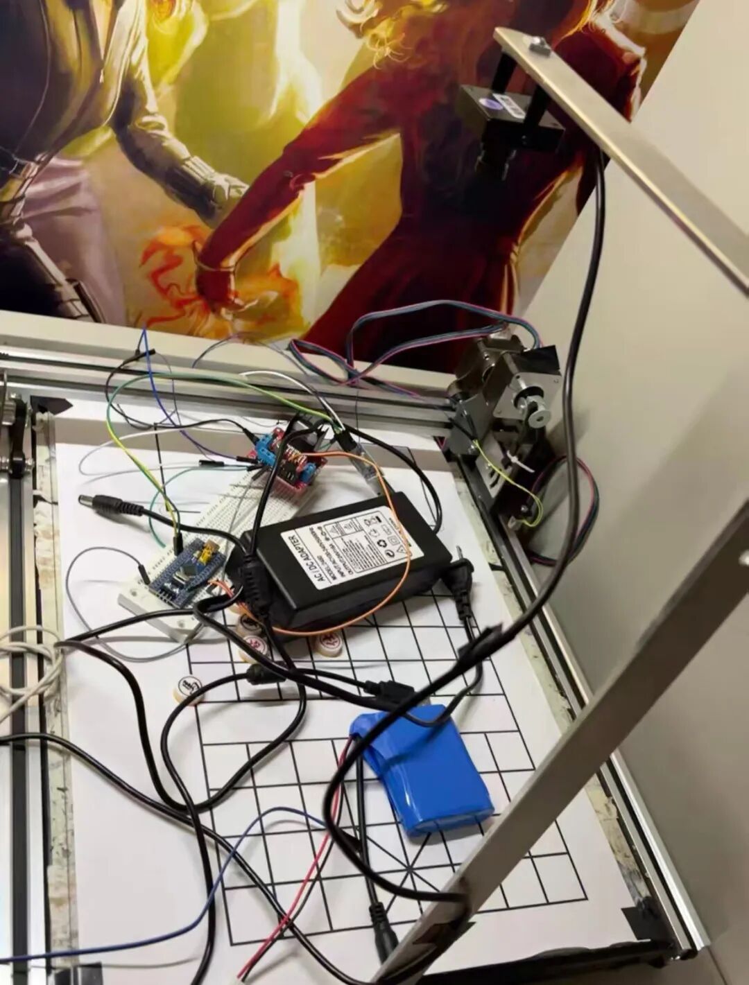 这就是步进电机的优势了,它的活动范围就是横竖两条线,因此落子可以精准放在对应位置,我记得而且理论上比机械臂操作更快,就是这造型不太美观。