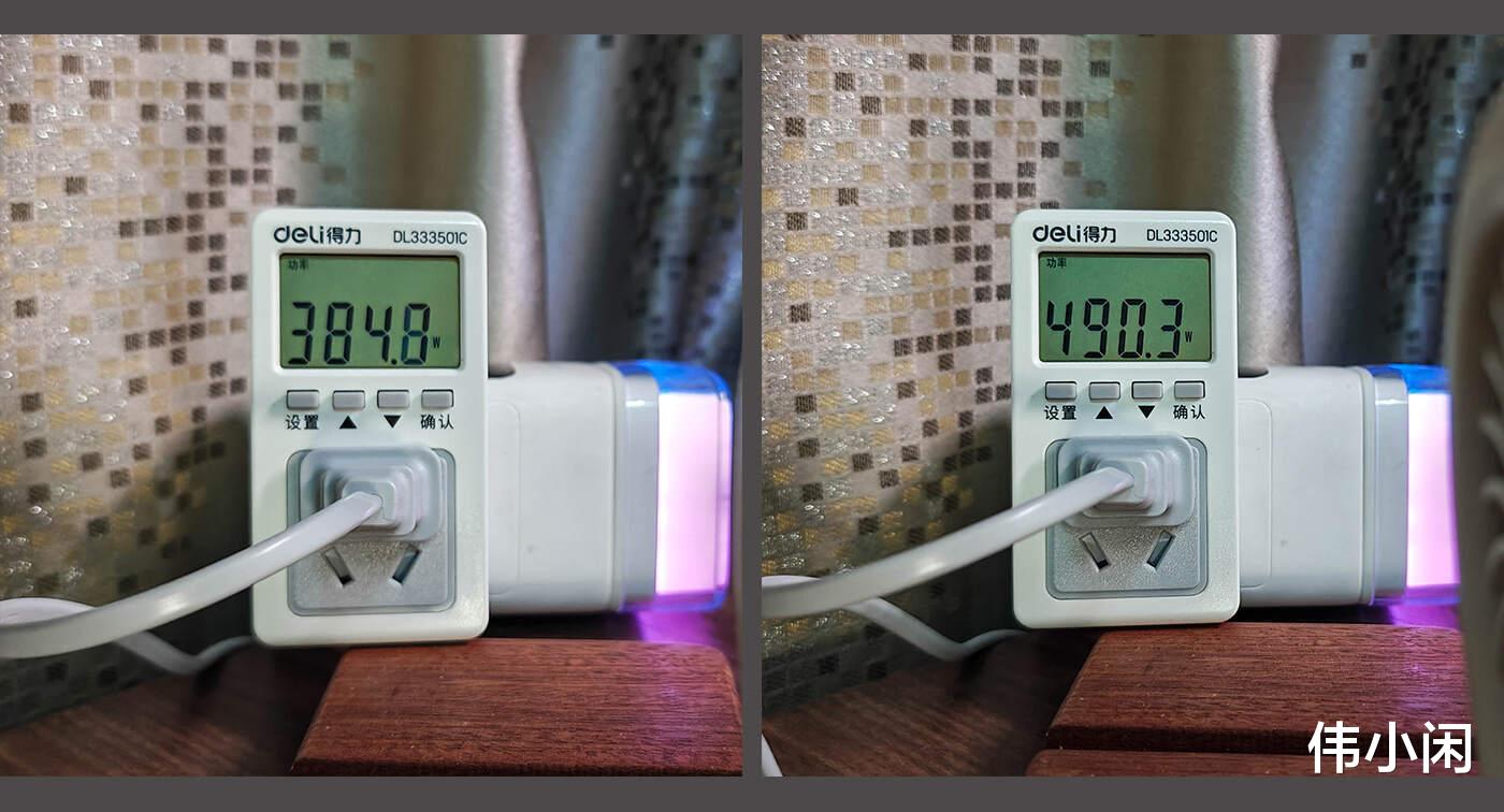 2)高档:高档位功率在490W前后变动。