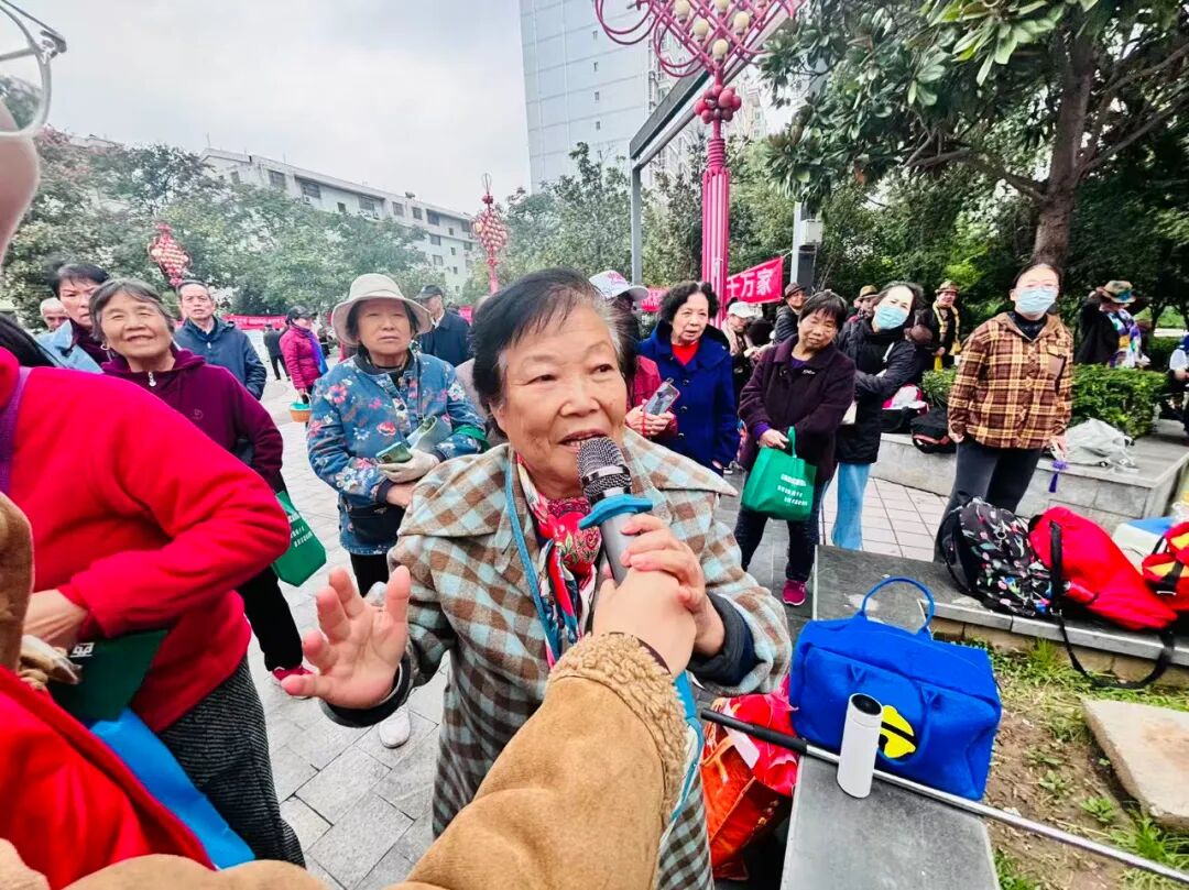 与舞台上的热闹相呼应,场边的“邻里小集市”同样人头攒动,温情满满。在垃圾分类宣传点,老人们通过趣味游戏学到了新知识;在家电以旧换新服务台前,志愿者们热心服务,为不少家庭解决了实际需求;最受欢迎的是健康服务与老年用品体验区,老人们聚集在这里,有的体验智能养老设备,有的咨询养老政策……每一项服务都精准对接了老年群体的生活需求,让关怀变得具体而实在。