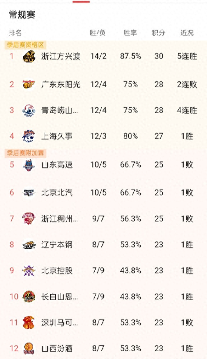 吉林大比分战胜了四川,结束三连败,7胜9负排名第10,上海排名第4,辽宁队8胜7负,排名第8,广东青岛同分,北京,山东都是10胜5负,排名第13位的宁波,胜场数也达到8次,只落后山东两场,积分榜排名紧咬,各队竞争压力不小,一场比赛的结果极有可能改变排名,积分榜会有持续性变化,球迷们还得持续关注比赛……