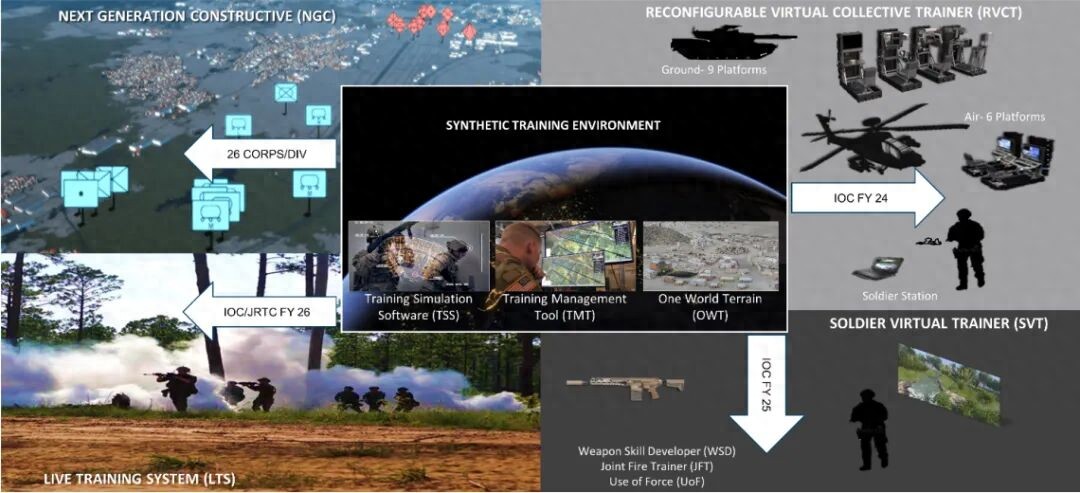 美国陆军于2017年开始研发“综合训练环境”系统,最初目标是在2021年实现初始作战能力,2023年实现全面作战能力,即提供一个高度逼真和沉浸式的训练环境。目前,该系统的部分功能已用于训练,但整个系统的开发和部署尚未全部完成。