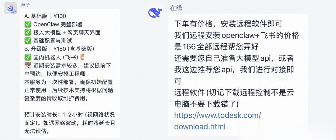 而这些服务的区别呢,除了安装之外,有的还会提供接入飞书、钉钉,安装一些skills,别的其实也就没有了,比较贵的,就是包一个未来的所谓VIP的技术指导。