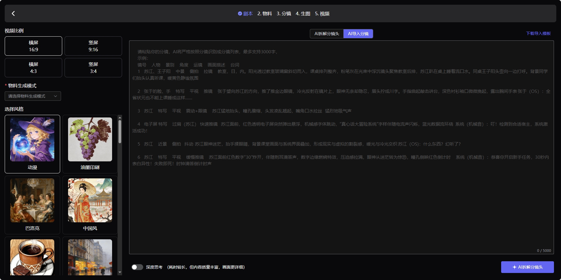 但到了角色场景制作、分镜设计、视频剪辑这些环节,AI的应用比例已经很高,大概在50%到80%之间。