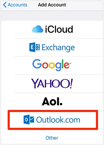 方法如下:步骤 1:转到 iPhone 上的“设置” ,然后单击“邮件”>“帐户”>“添加帐户”>“ Outlook.com ”(对于个人帐户)或“ Microsoft Exchange ”(对于工作/学校帐户)。
