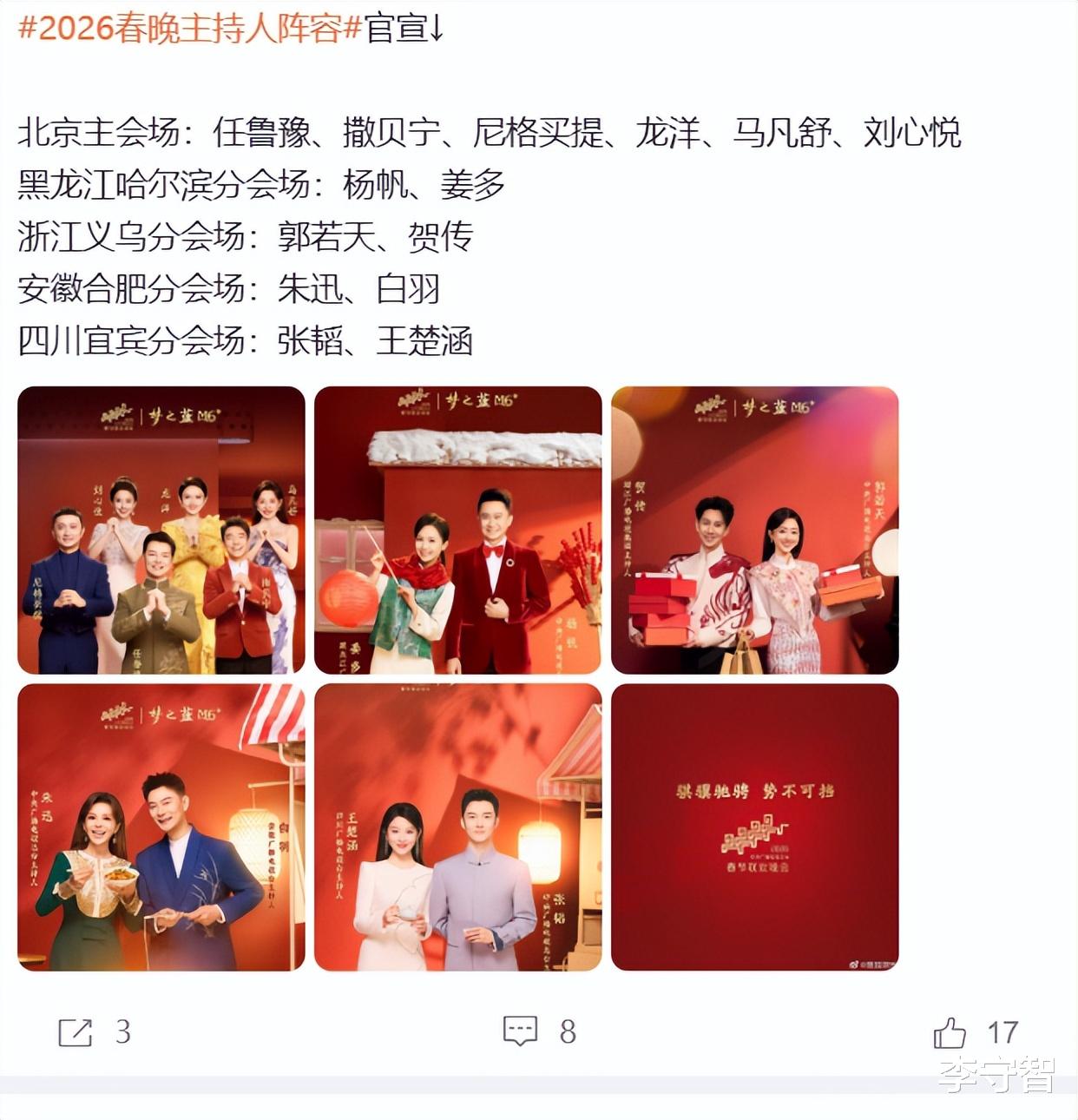 在这种审美疲劳的情况下,央视也在努力吸引明星参加增加粉丝和网友关注。在明星和节目单还没曝光的时候,先行官宣主持人阵容。