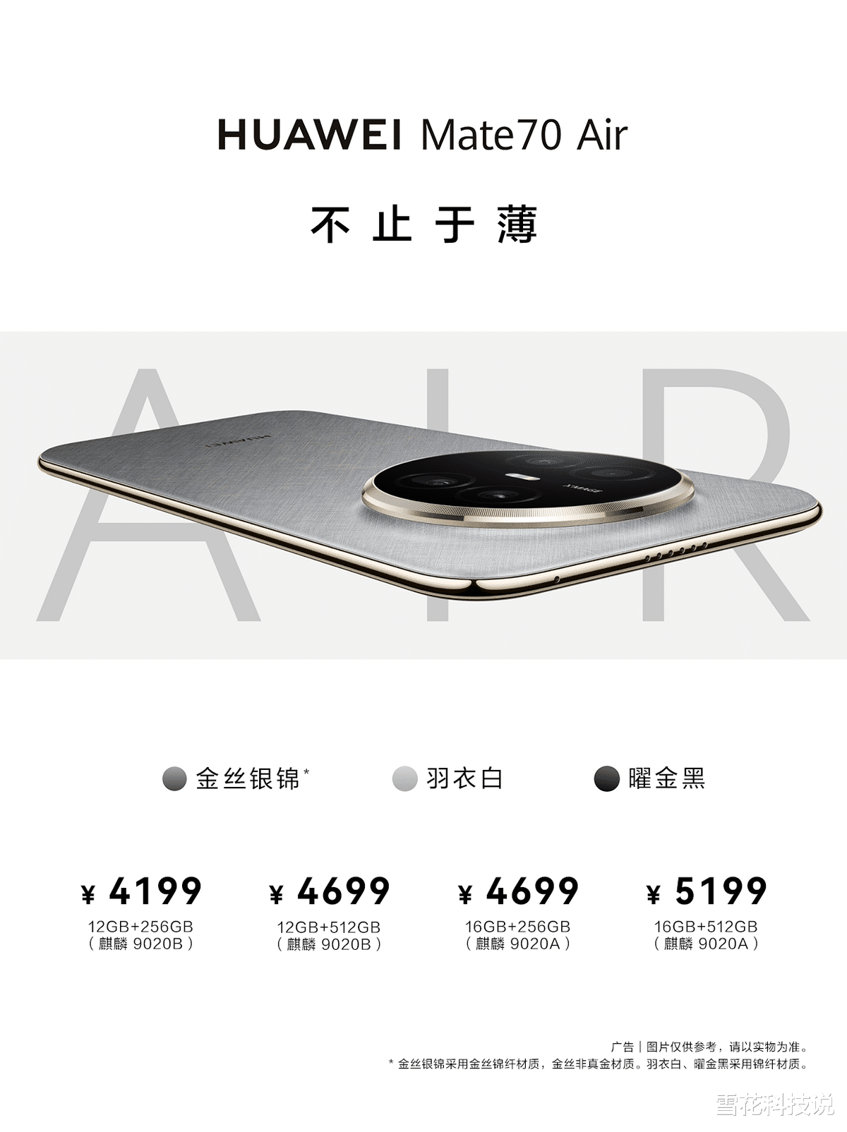 在智能手机市场逐渐从“参数内卷”转向“体验为王”的当下,一款旗舰手机不仅需要强悍的硬件配置,更要具备适配多元用户需求的全场景能力。而华为Mate 70 Air正是在这一背景下诞生的产品代表,它凭借6.6毫米纤薄机身与208克轻盈重量,以及7英寸临境大屏、6500mAh大容量电池等硬核配置,重新定义了“轻薄大屏旗舰”的行业标准,为用户带来全场景舒适用机体验。近日,华为Mate 70 Air 16GB版本的正式开售,更是在16GB超大运存、麒麟9020A芯片与HarmonyOS 6的加持下,实现了性能与智慧体验的全面进阶,成为年末换机季的不二之选。